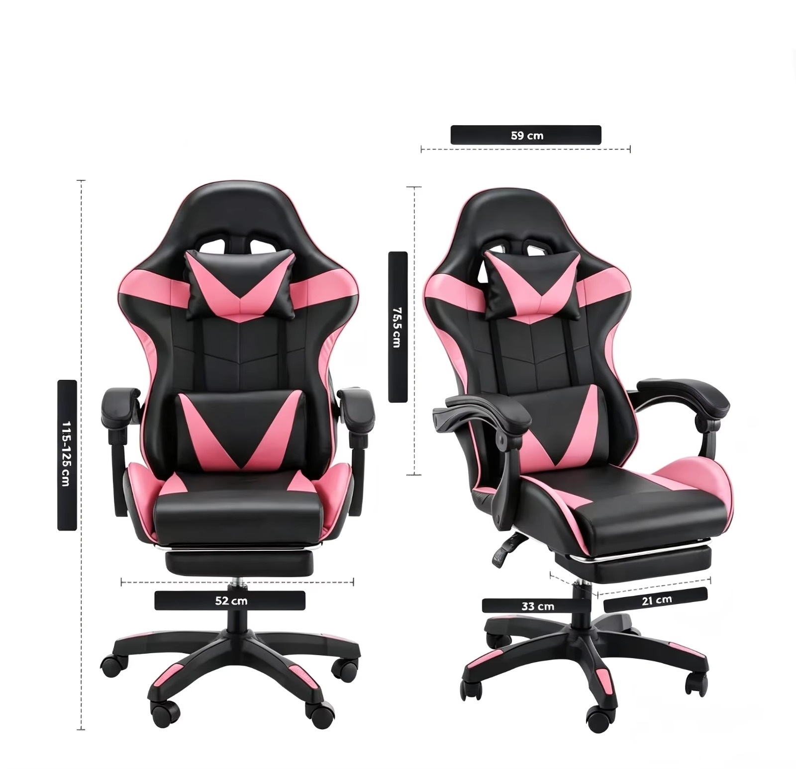 La silla gamer ergonómica Unicorn P!nk de Flixar es la elección perfecta para aquellos que buscan comodidad y estilo en su espacio de juego. Con su elegante diseño en negro y tapizado de cuero sintético, esta silla no solo se adapta a tu estética, sino que también proporciona el soporte necesario para largas sesiones de gaming o trabajo. La estructura robusta, compuesta de metal y plástico reforzado, permite que la silla soporte hasta 150 kg, garantizando durabilidad y seguridad. Su respaldo reclinable, con un rango de inclinación de 90° a 180°, te permite encontrar la posición ideal para relajarte o concentrarte en tus eventos más importantes. El asiento cuenta con un diseño ergonómico que incluye un reposapiés integrado para mayor confort. Además, el sistema de ajuste de altura y los reposabrazos fijos aseguran que cada usuario pueda personalizar su experiencia de uso. Con una altura máxima de 125 cm y una profundidad de asiento de 50 cm, la silla se adapta a distintas necesidades físicas. Con un elegante acabado y una fácil asamblea, la silla gamer Unicorn P!nk de Flixar es la combinación perfecta de funcionalidad y estética para cualquier espacio de juego o trabajo.