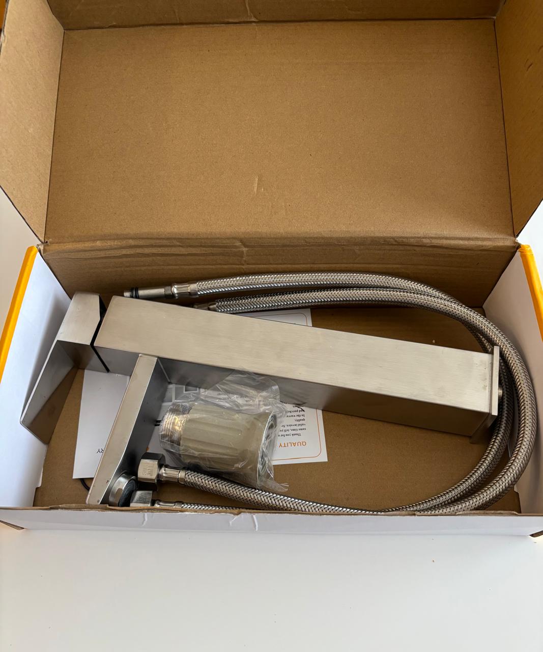 Grifo para lavabo de acero inoxidable color acero inoxidable, con sus latiguillos, nuevo, con garantia . Cualquier pregunta no dude en consultarnos!. Se hacen envios y la caja viene preparada y protegida para que en el envio le producto no sufra daños.