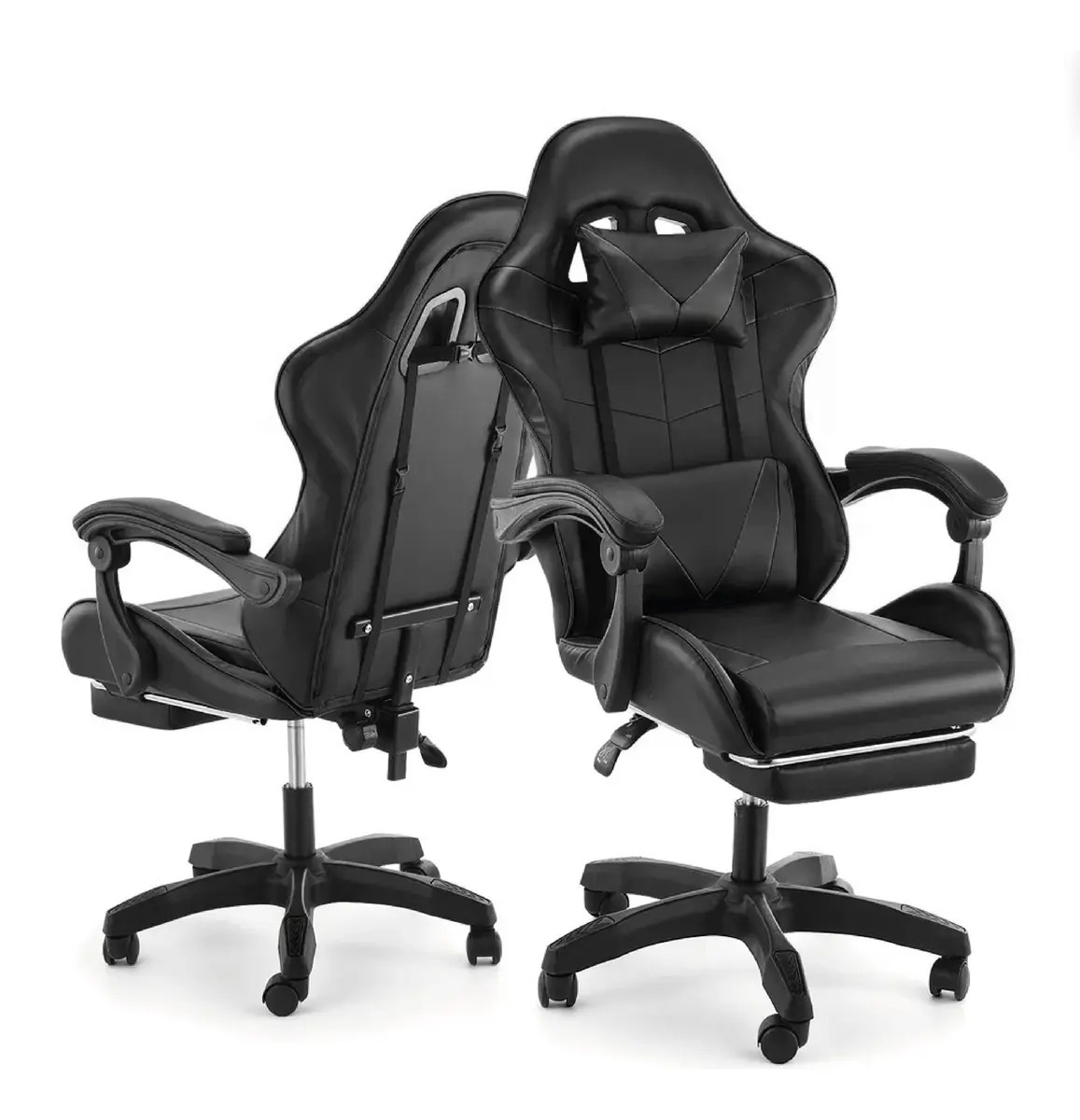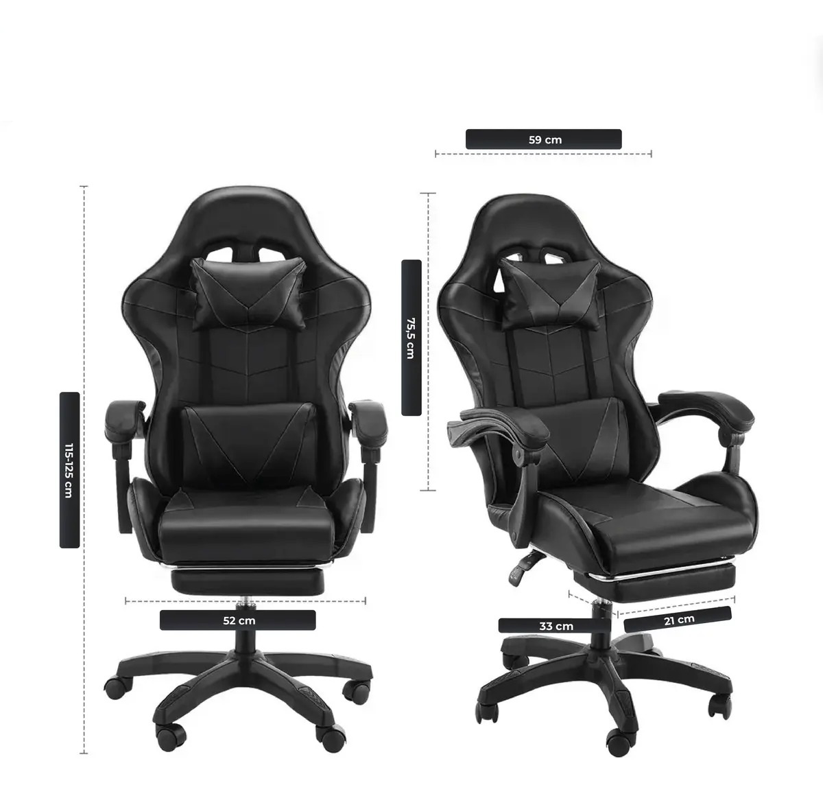 Silla Gamer Ergonomica Reclinable Con Apoya Pies Base Giratoria De Cuero Sintetico Black Mamba de Flixar
